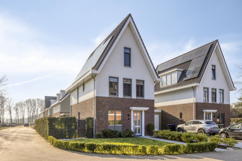 Aan de zijkant van de woning bevindt zich de carport met toegang tot de berging. Deze biedt extra bergruimte of plaats voor fietsen en tuinbenodigdheden.